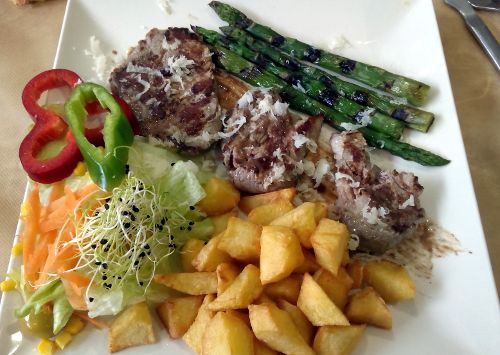 Todo está tan bueno que cuesta sacar fotos, pues a uno se le olvida. La primera vez apenas hice y tuve que ir una segunda (muy sacrificado el trabajo de crítico gastronómico freelance). También se puede disfrutar de un buen entrecot aunque recomendaría la paella, sinceramente. También hacen postres caseros que están para perder el sentido.
